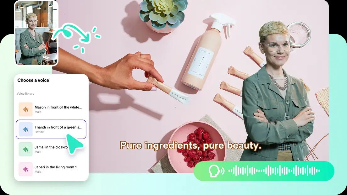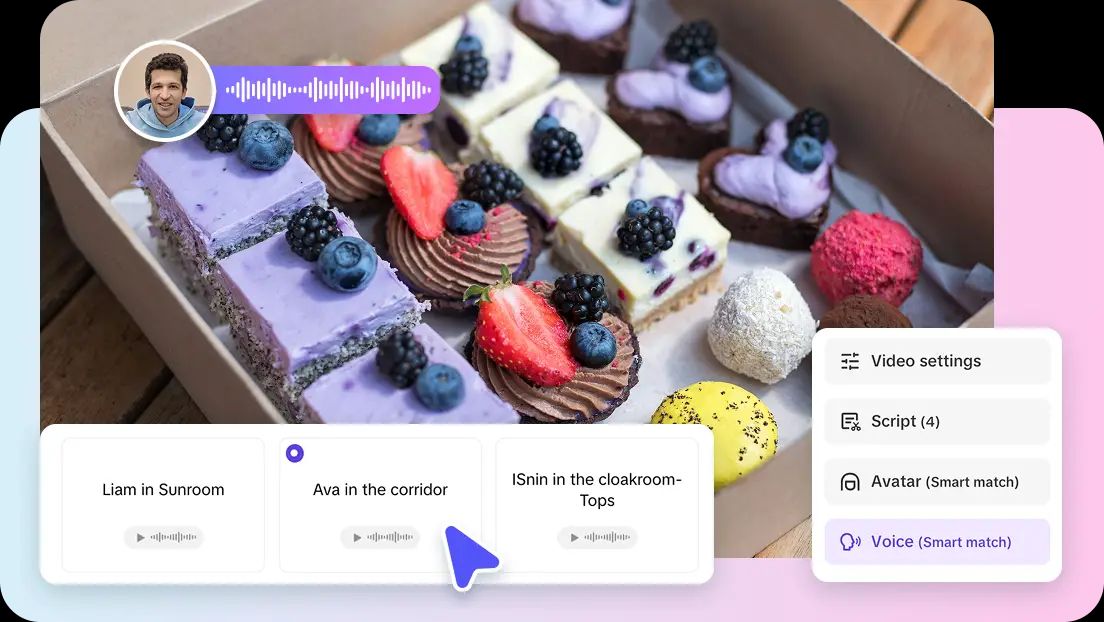 The AI video generator automatically adjusts brightness, contrast, and overall tone of your video. It also manages transitions, pacing, and adds avatars, captions, and photos/videos.