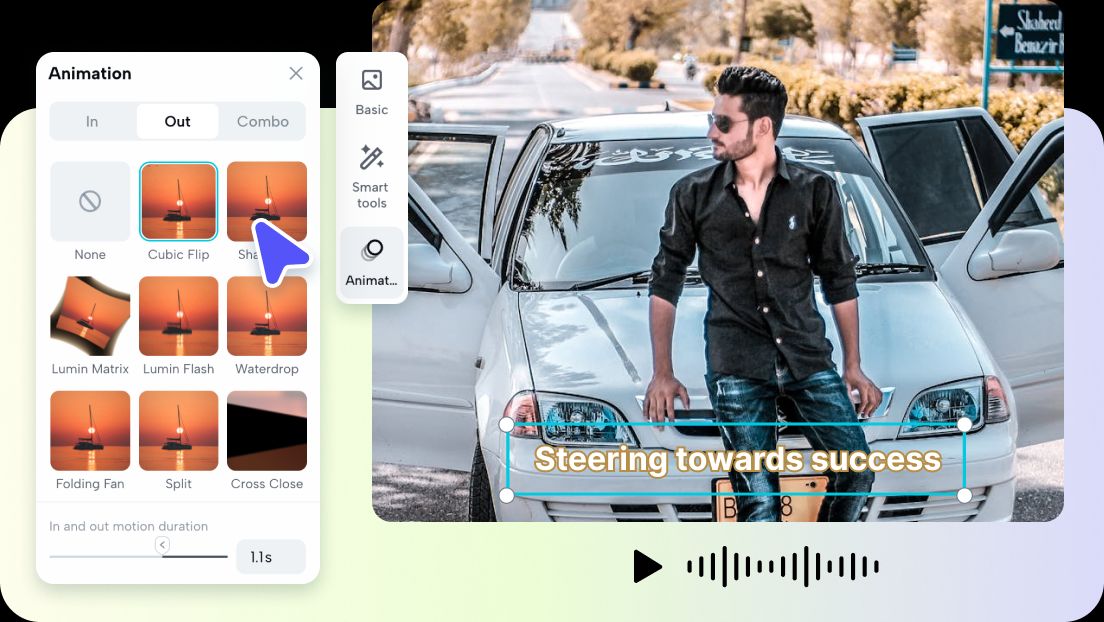 With full creative control, tweak brightness, tone, filters, text, and alignment. You can also add effects, music, or remove the background.